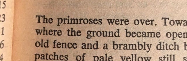 First line: “The primroses were over.”